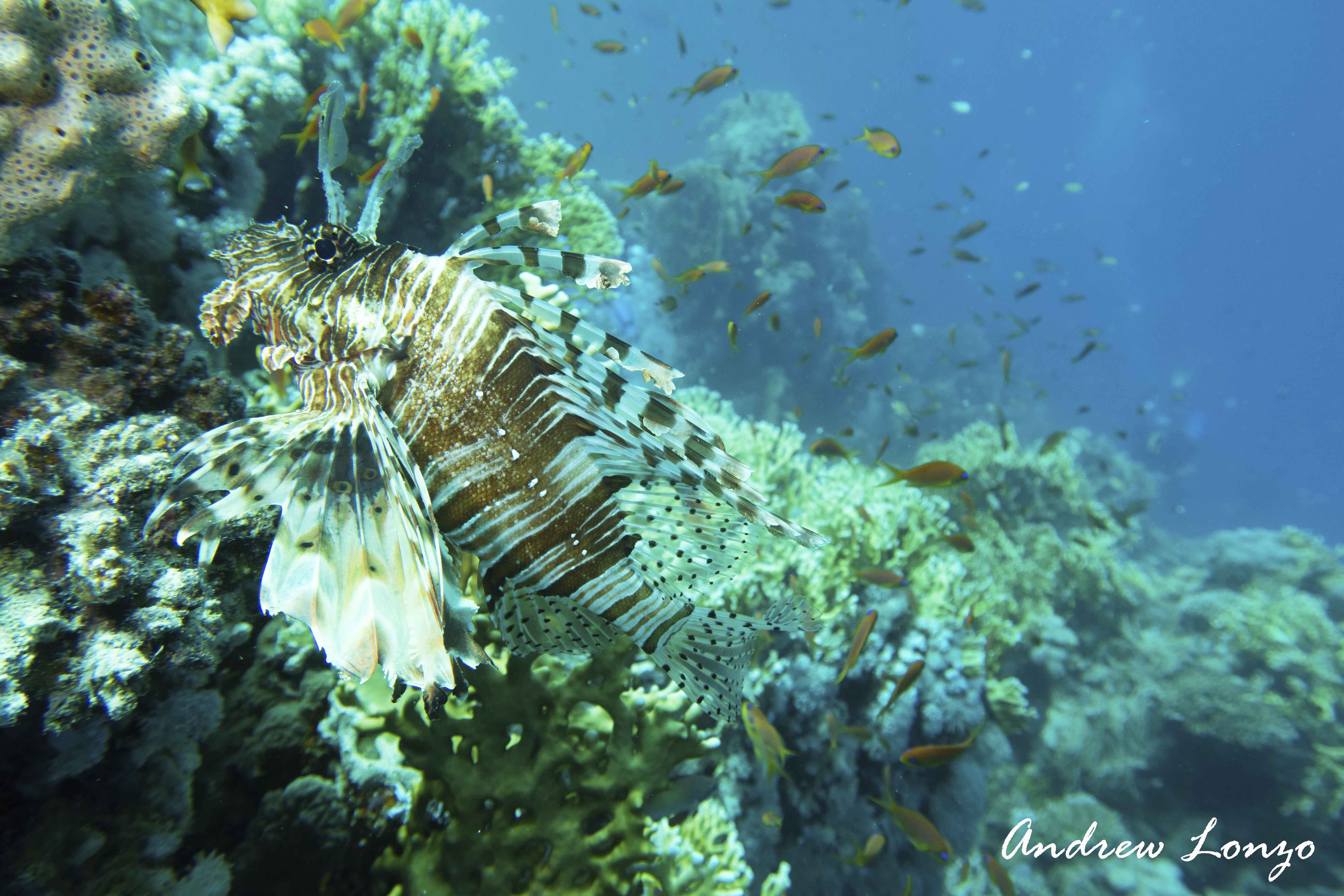 Part of our Beauty Discovered series. Native Lion Fish searching for prey on Little Brother in the Red Sea. Shot with one of our rentals, Canon G7X Mark II in a Fantasea Houseing, with a Kraken 3500+ WSRU video light. While Lion Fish are native in the Red Sea, they are a intrusive species here in Key Largo, come learn how to catch these delicious fish to help reduce their invasive population.
